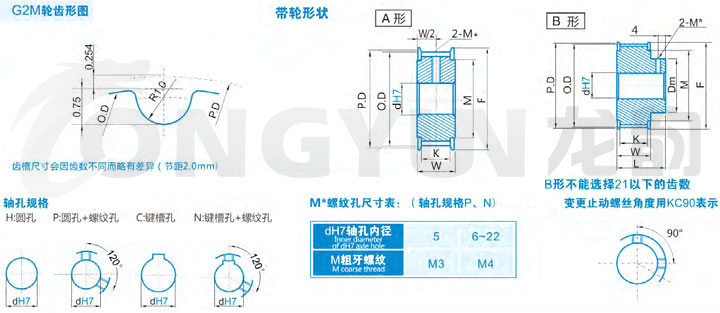 | 規格 | 形狀 | 節徑P.D | 外徑O.D | 擋邊外徑F | 擋邊內徑M | 輪轂直徑Dm | 內孔dH7 | |||||