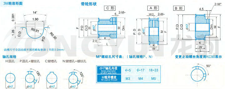| 規格 | 形狀 | 節徑P.D | 外徑O.D | 擋邊外徑F | 擋邊內徑M | 輪轂直徑Dm | 內孔dH7 | |||||