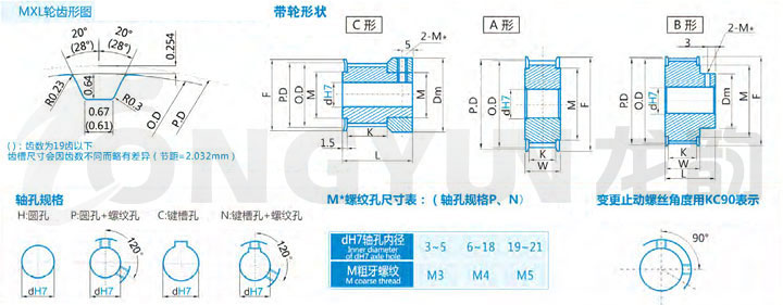 加工MXL同步帶輪可以按照您所需的材料加工。MXL同步帶輪表麵處理有本色氧化,發黑,鍍鋅,鍍彩鋅,高頻淬火等處理。精度等級依客戶要求而定。