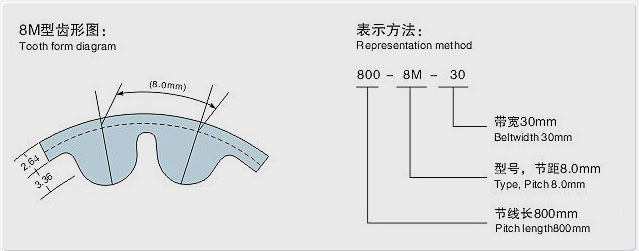 HTD代表圓弧齒型同步帶;8M:同步帶的齒距;3400:表示3400mm節線長,也表示425個齒;寬度可以根據您的需求進行切割,草莓污污视频公司模具標準高度為450mm;